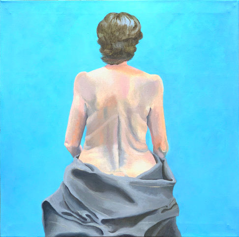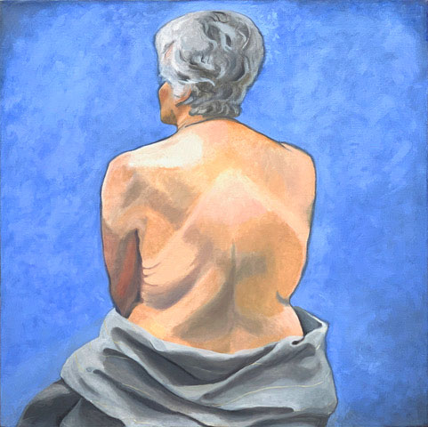 The portraits I wanted to paint from behind, to connect with the hidden spirit that goes with us everywhere, guilelessly. We consciously put our faces forward, and our backs are mystery to us. Our backs retain innocence and vulnerability, while bearing scars and strength of experience. With our backs we shoulder burdens and responsibilities. We feel abandoned when someone turns their back on us, we associate strength or weakness with our spine. I was surprised at how our backs flush and fade, in much the same way our faces do, and in a more subtle demonstration of what octopi and other undersea creatures do. The changing colors and shades were far more dramatic than I expected, and impossible to paint.