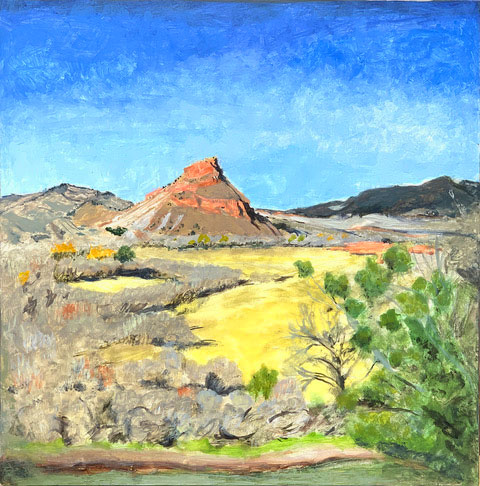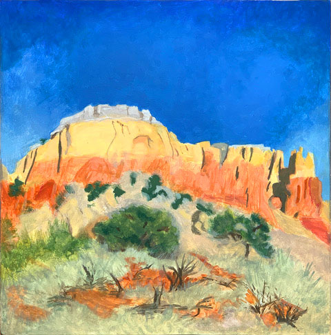 Breaking from the narrative thread of last year, I returned to direct visual and visceral contact with living subject matter. Seeing has always been bedrock for me, and the rock outcroppings of Abiquiu were calling. Painting from life helps me see what is not visible to me when I am simply looking, and it puts me in touch with the vibrations of my subject. It takes me out of my mind and into the energy field, and the optical impressions in my eyes.